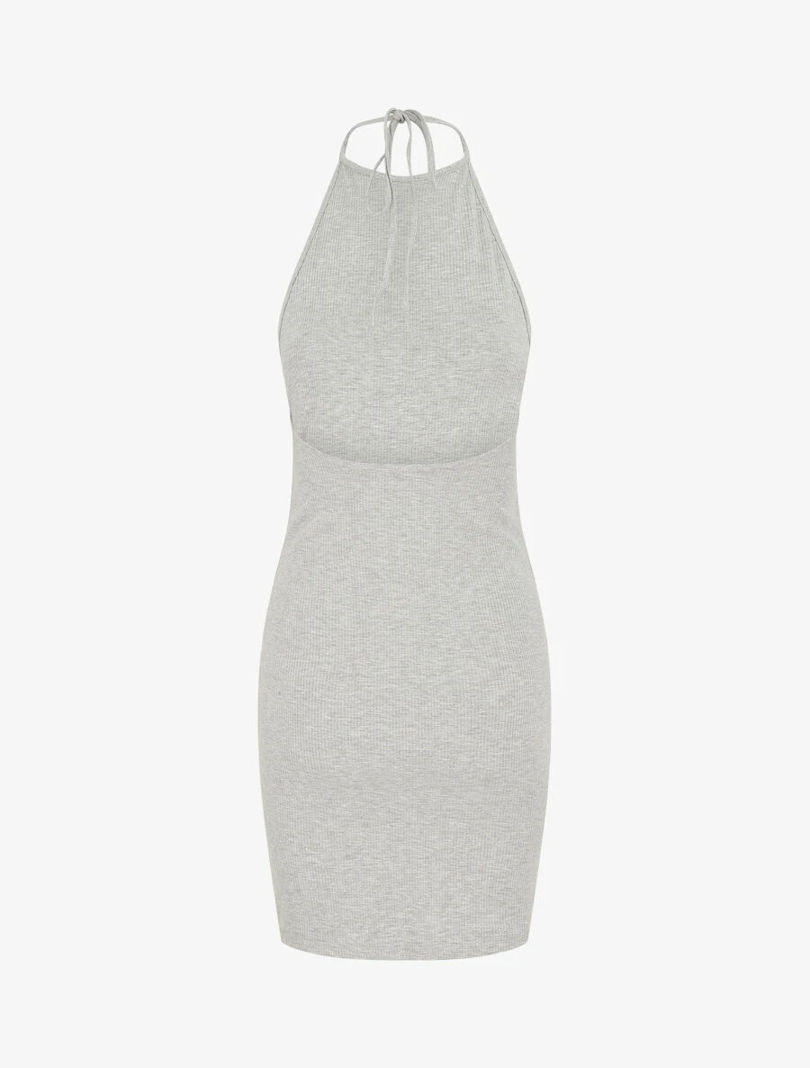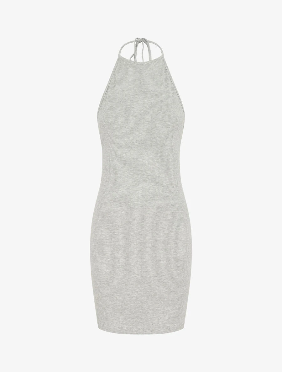 Robe Unie Côtélé à Dos-nu – Gris